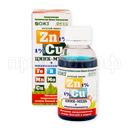 Содержит: Zn–1%, Cu–1%, Fe–0,02%, B–0,0014%, Mn–0,018%, Мg–0,0025%, Mo–0,004%, Co–0,0008% в хелатной (легкоусвояемой) форме.